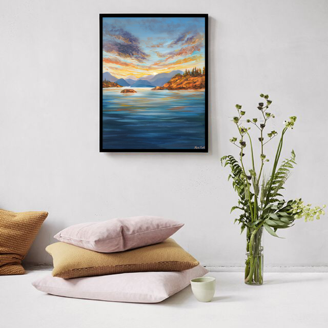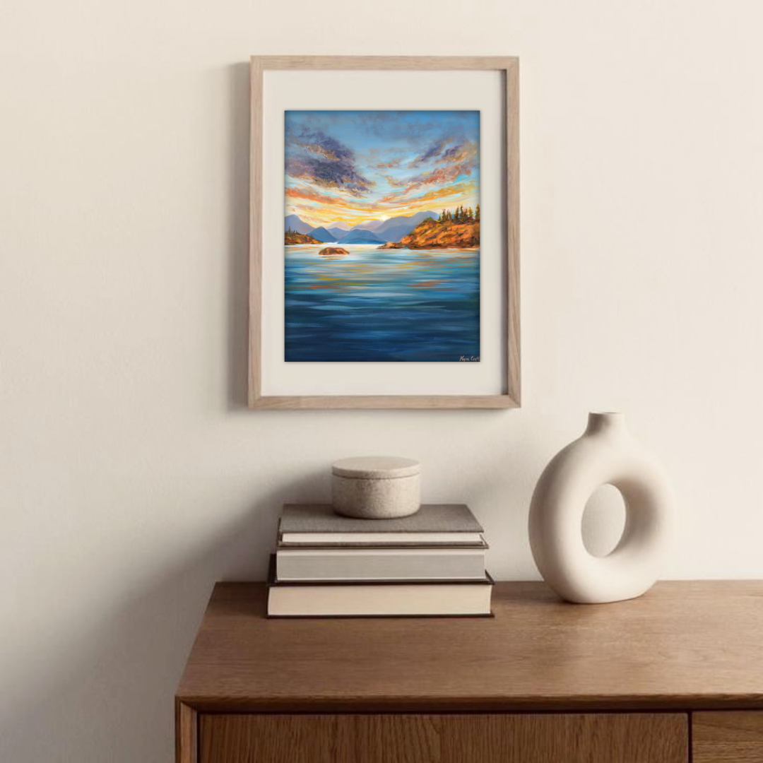 All prints are created using archival quality materials made to last. Paper prints have a smooth matte finish, while canvas prints and originals are finished with a glass varnish for life-long protection. All prints are printed on acid-free materials using inkjet technology to ensure exceptional vibrancy and longevity.