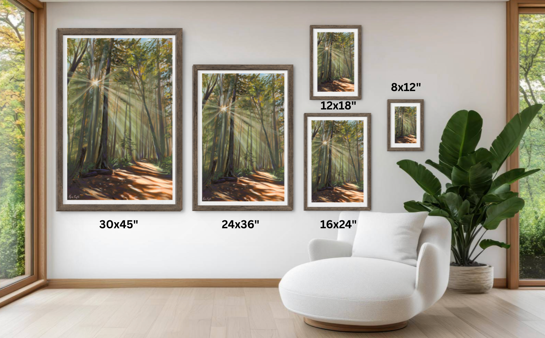 Paper sizes refer to the paper’s total dimensions and include a white border signed by the artist. The one or two smallest print size options will have a 0.5-inch border, while the remaining sizes will have a 1-inch border. For example, a 16x20” paper print will have a 1-inch border with a displayed image of 14x18". Please note the image displayed might be minimally altered from the preview to fit the selected sizing dimensions, always preserving the integrity and focal point of the image.